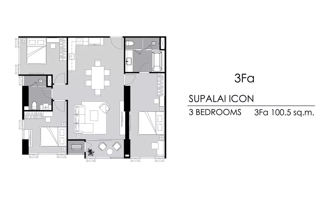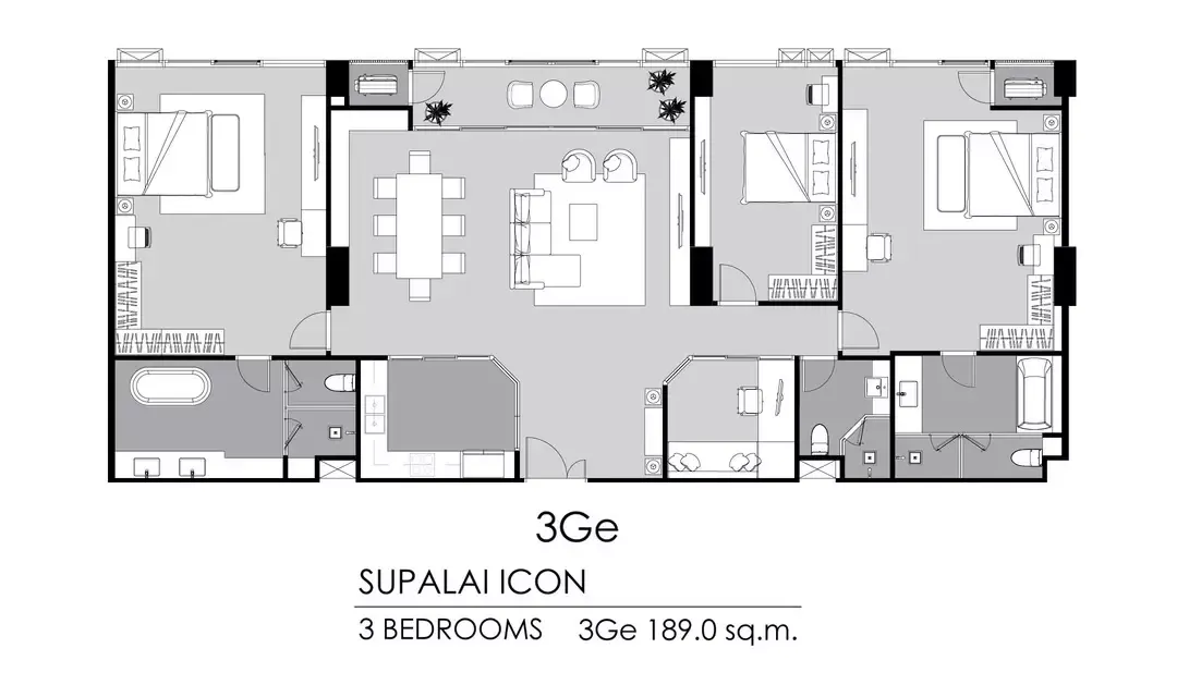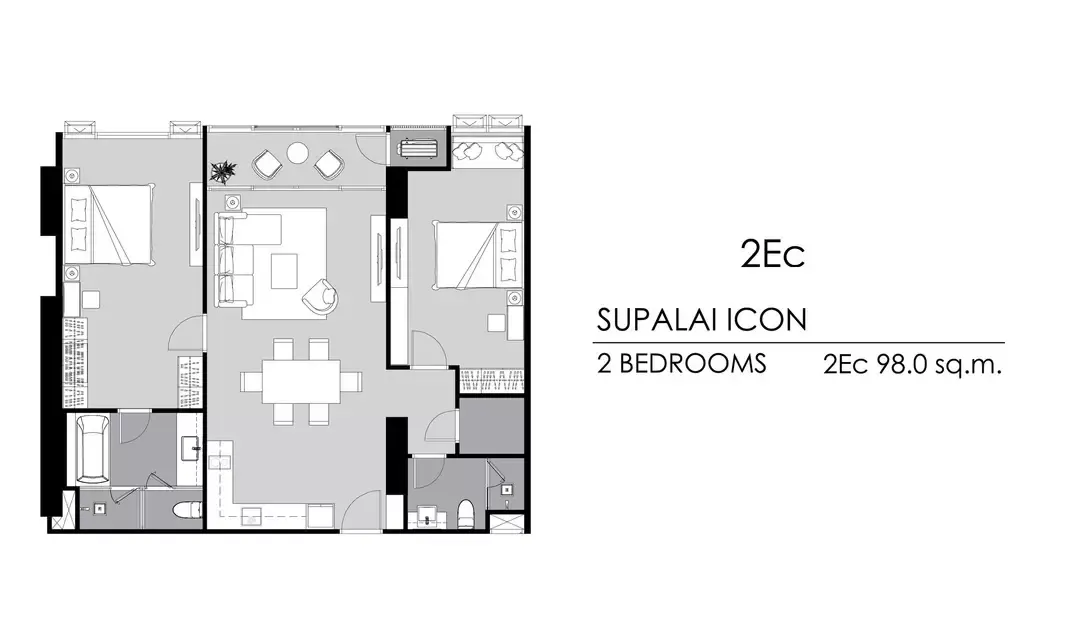 Supalai ICON Sathorn 提供多種戶型選擇,一房:34-37 平米、一房 PLUS:47 平米、兩房:65-68 平米、三房:102-103 平米