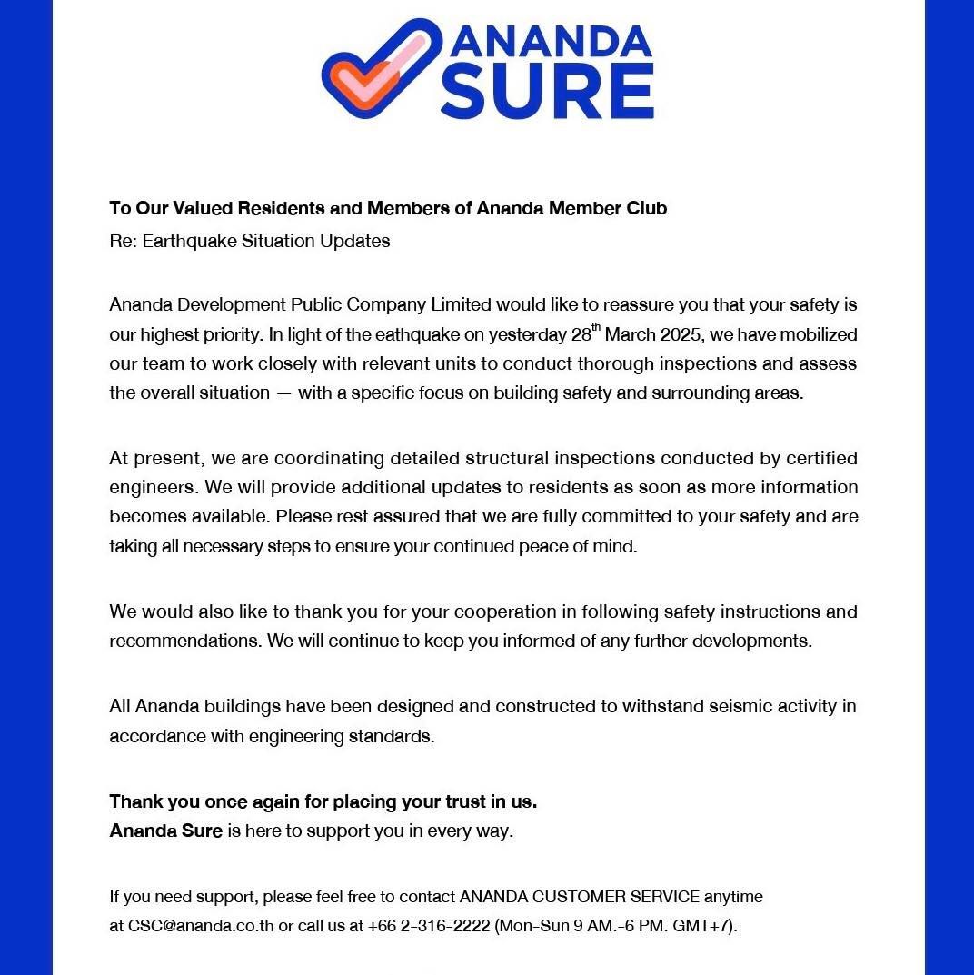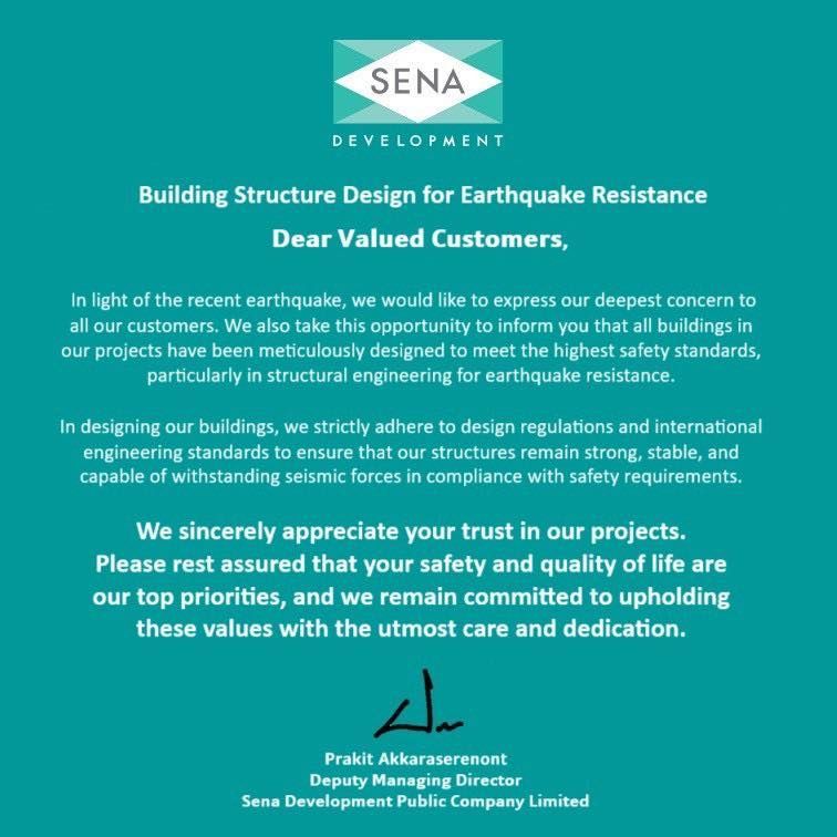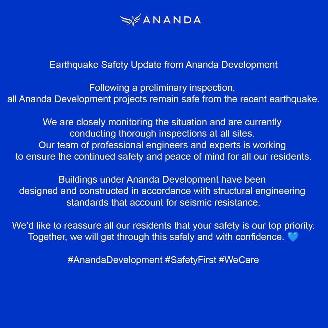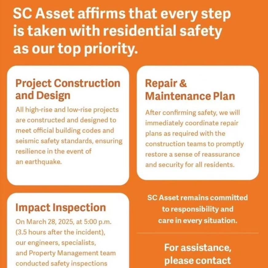 目前泰國主要開發商,都已經逐步完成項目結構安全檢查,並啟動後續修繕作業。開發商相關聲明如下:
