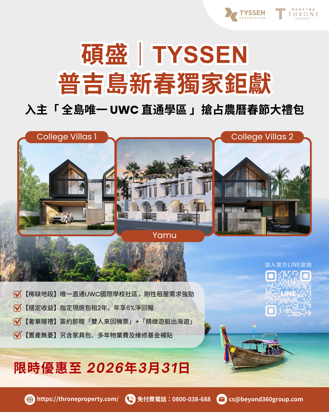 碩盛獨家攜手普吉島知名開發商 Tyssen,於農曆新年之際,隆重推出專屬尊榮禮遇。