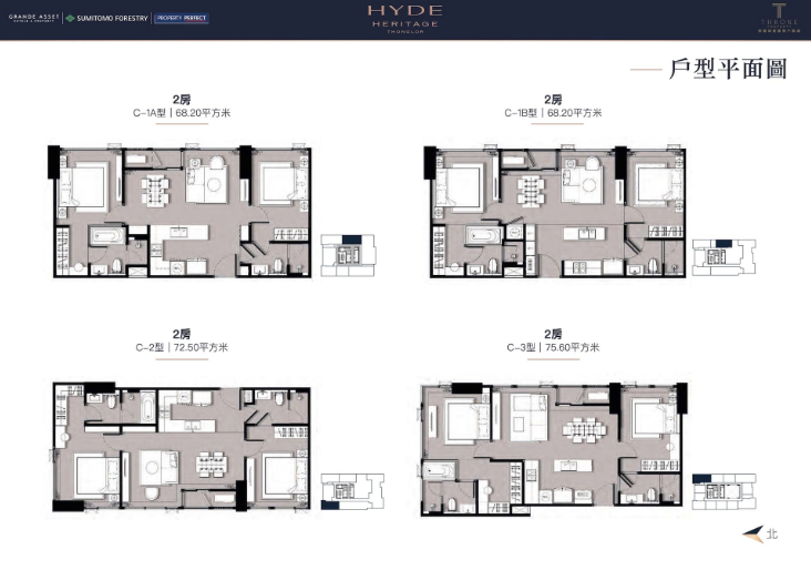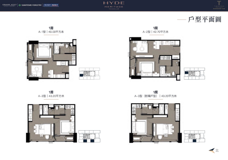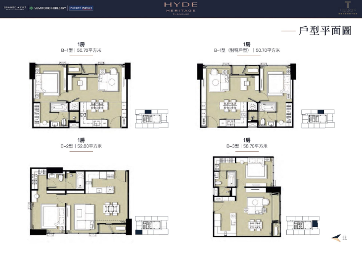 HYDE Heritage Thonglor offers a variety of unit types, including 1-room (40 to 43.2 square meters), 1-room Plus (50.7 to 58.7 square meters), 2-room (68.2 to 86.6 square meters) and 3-room (111.3 to 186 square meters). In addition, there are duplex units with an area of 234 to 326 square meters, and the penthouse has a spacious space of 357 square meters to meet the needs of buyers with different needs.