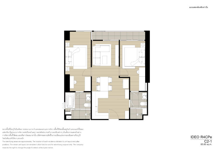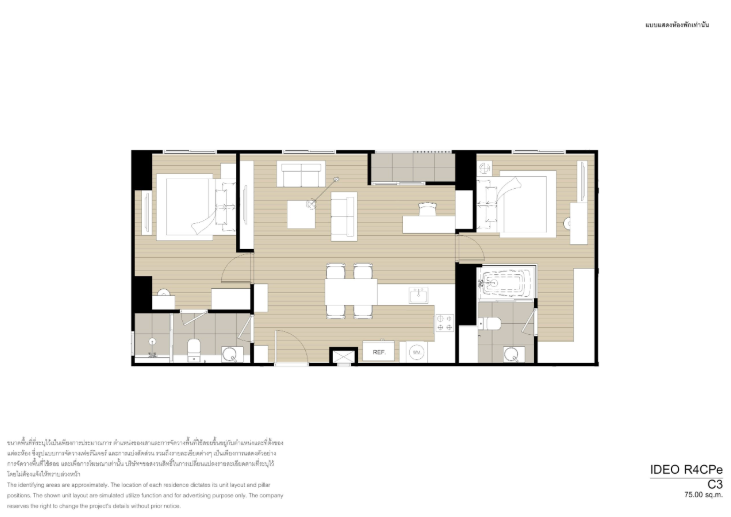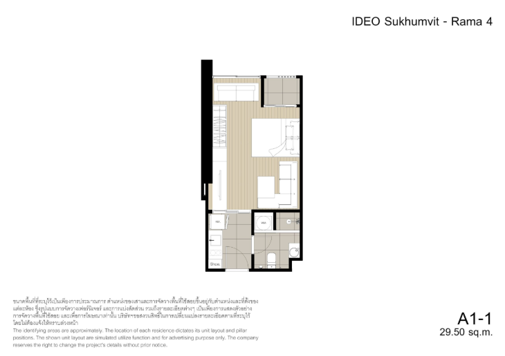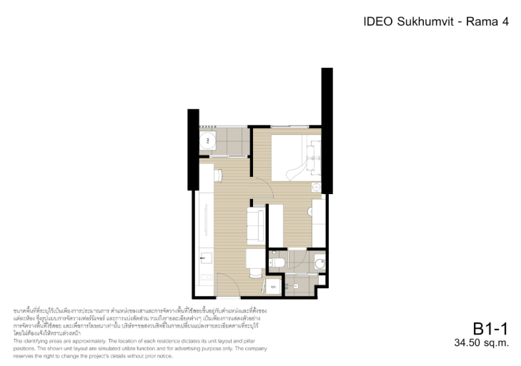 IDEO Sukhumvit Rama 4 offers a variety of apartment options, including suites (29.5 square meters), one-bedroom (34.5 square meters), one-bedroom Plus (44 square meters) and two-bedroom (65, 75 square meters). In addition, the public facilities include a shared workspace, a semi-outdoor sports field, a floating pavilion, a 24-hour gym, waterfall elements and a swimming pool.