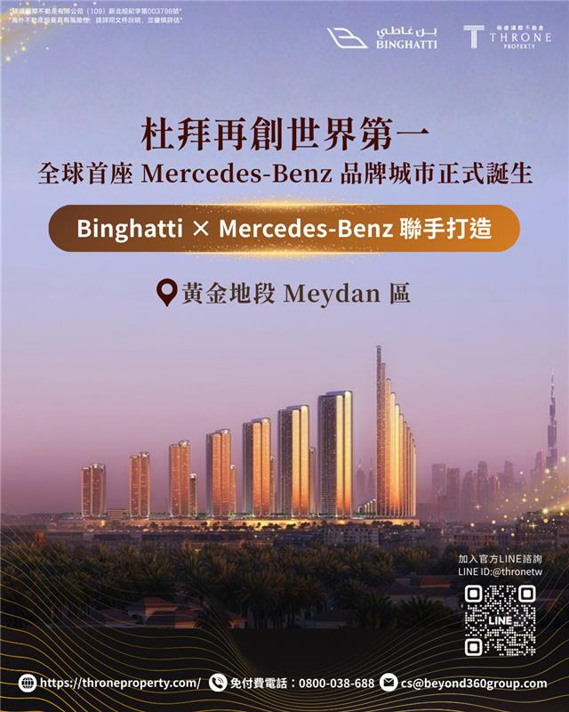 杜拜房地產市場迎來劃時代的鉅作!實力開發商 Binghatti Developers 再次攜手豪華汽車品牌 Mercedes-Benz,強強聯手宣布將推出總價值高達 300 億迪拉姆(約 82 億美元) 的超大型社區——Mercedes-Benz Places – Binghatti City。同時,這也是 Binghatti 首座整體規劃的大型社區項目,計畫於 2026 年 1 月 14 日正式啟動!