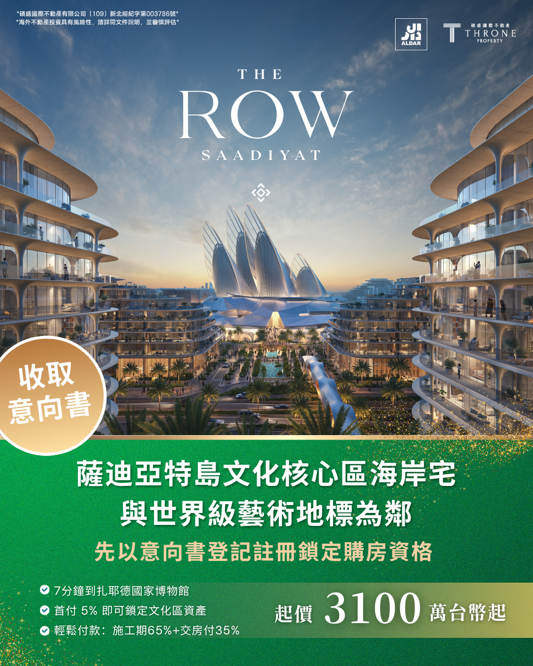 【開始收集意向】行情價 7 折入主阿布達比薩迪亞特島藏品級海岸豪宅--The Row Saadiyat