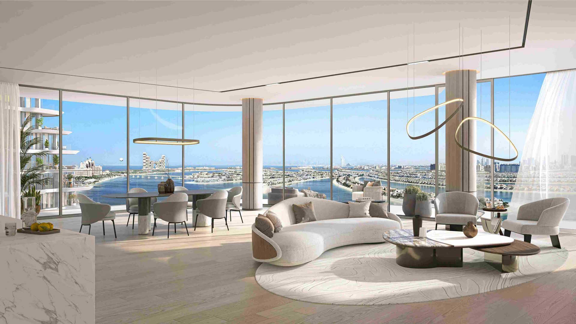 - 不僅是一座住宅,更是一個融合了度假村級別設施與私密居住體驗的生活場域,擁有棕櫚島最長的 80 米頂層無邊際泳池,每一角落都可欣賞哈里發塔、帆船酒店、亞特蘭蒂斯酒店等城市地標景觀。