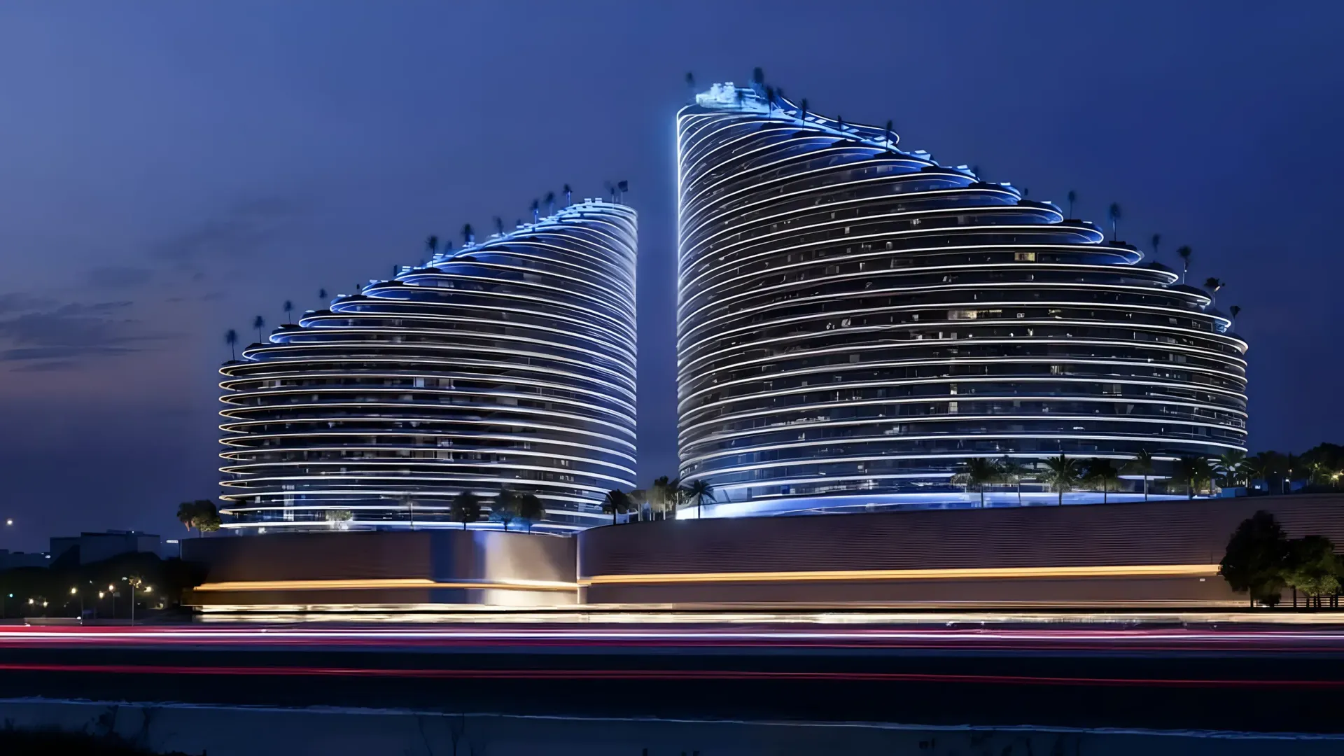 - 該項目以充滿流線感及層次燈光的雙塔建築外觀為亮點。