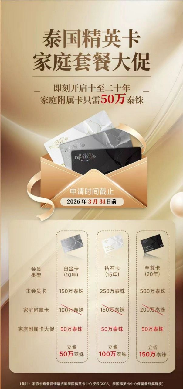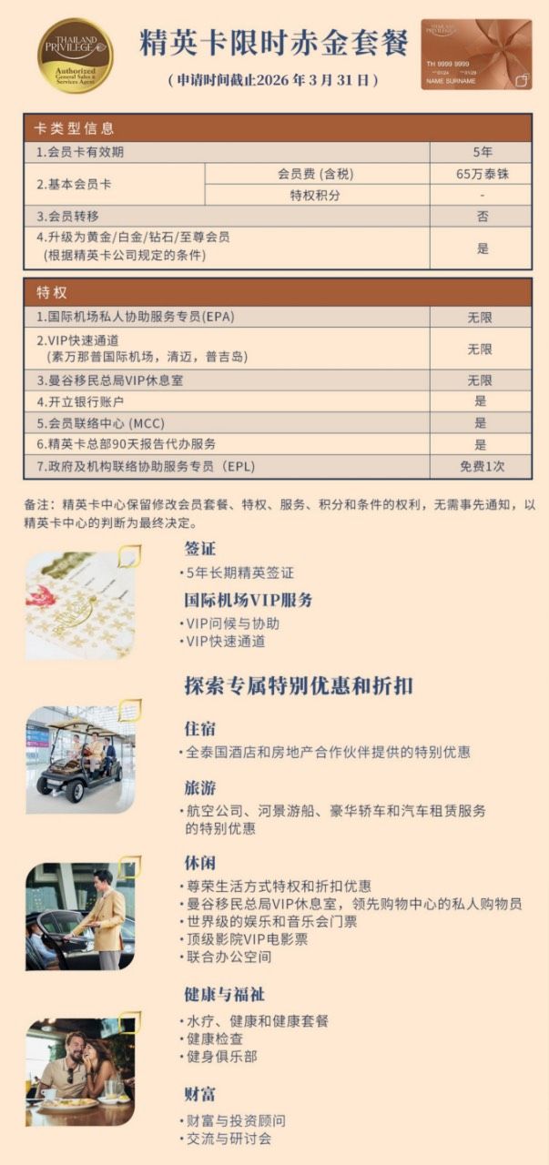 我們的長期合作夥伴泰國精英卡有限公司為回應眾多申請者的期待,協助更多尋求長期停留在泰國但預算有限的客戶群體,實現第二家園的生活佈局。特別延長赤金卡會員和精英簽附屬會員優惠的申請期限。