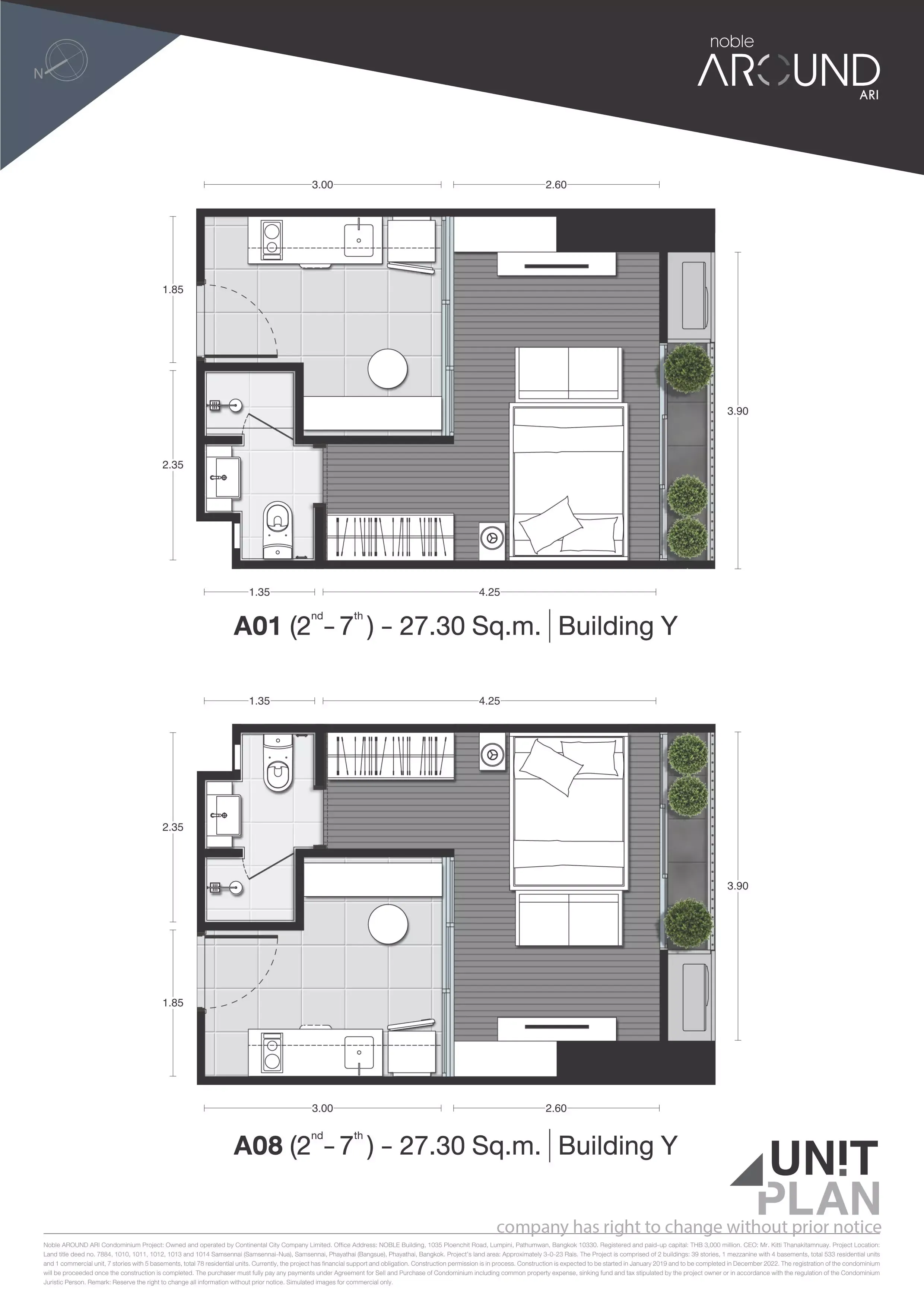 Noble Around Ari มีห้องชุดหลากหลายประเภทให้เลือก ได้แก่ 1 ห้องนอน 1 ห้องนั่งเล่น 1 ระเบียง (เล็ก) 26.4 ตารางเมตร, 1 ห้องนอน 1 ห้องนั่งเล่น 1 ระเบียง (ใหญ่) 34.6~34.9 ตารางเมตร และ 2 ห้องนอน 2 ห้องนั่งเล่น 1 ระเบียง 41.6~44.70 ตารางเมตร ประกอบด้วย 2 อาคาร รวมทั้งหมด 611 ยูนิต แบ่งเป็นอาคาร X และอาคาร Y พร้อมสิ่งอำนวยความสะดวกที่พักอาศัยระดับไฮเอนด์ และบริการสุดเอ็กซ์คลูซีฟ